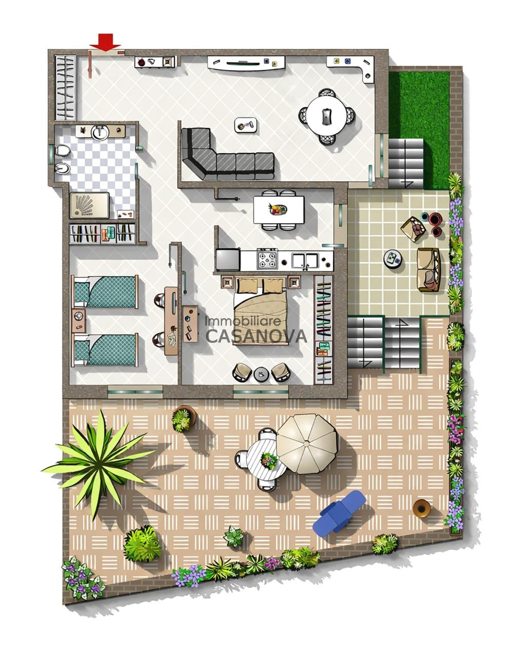 L’immobile, recentemente e finemente ristrutturato, si sviluppa su una superficie interna di circa 90 mq, ben distribuiti in: ingresso, ampio soggiorno, cucina, due camere da letto e bagno.